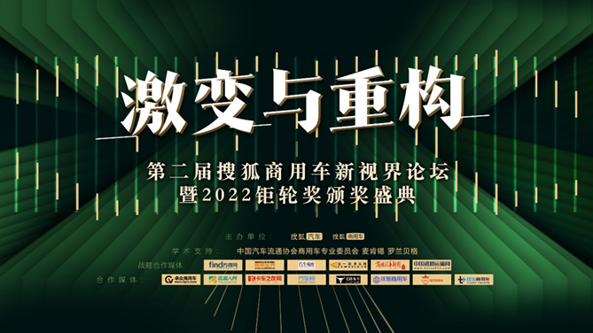 12月15日下午,由搜狐汽车与搜狐商用车主办的“激变与重构”第二届搜狐商用车新视界论坛暨2022钜轮奖颁奖盛典于线上圆满举办。在汽车“新四化”变革、“国六”法规切换等不确定因素的剧烈冲击之下,商用车行业正经历着前所未有的变化,商用车市场也加速调整。一方面,库存