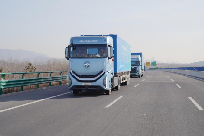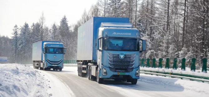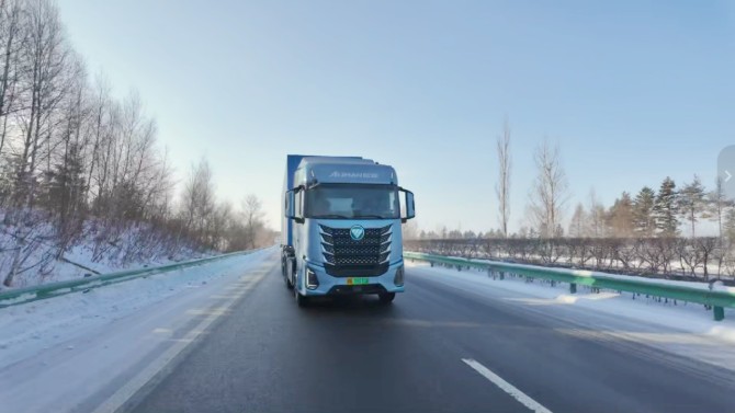 从长春始发,车队便率先踏入-30℃极寒核心区域,全程历经多轮露天静置、昼夜温差交替的极端考验,无论是长春城区的低温冷启动,还是白山至沈阳沿途的持续严寒行驶,都对车辆的低温适应性提出极致要求,也正是在这条贯穿极寒地带的核心路线上,欧曼银河纯电重卡的超宽温域适配能力得到全面验证。